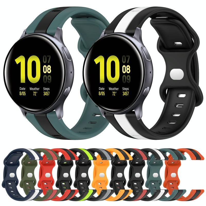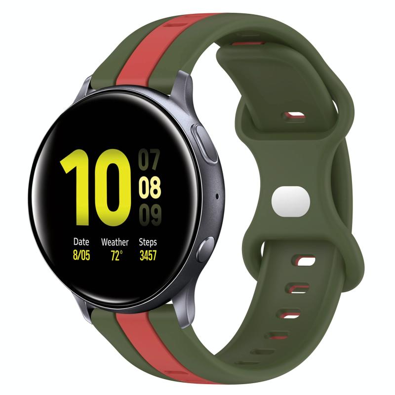 For Samsung Galaxy Watch Active 2 40mm 20mm Butterfly Buckle Two-Color Silicone Watch Band(Red+Army Green)