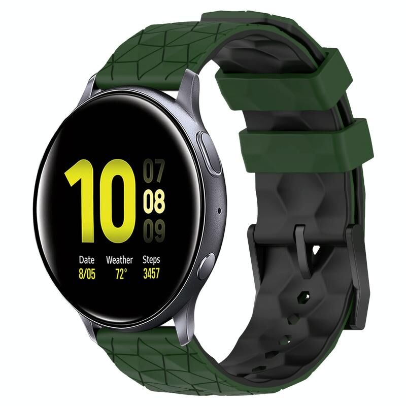 Για Samsung Galaxy Watch Active 2 40mm 20mm ποδοσφαιρικό μοτίβο δύο χρωμάτων σιλικόνης ρολόι μπάντα ρολογιού (πράσινο στρατού + μαύρο)