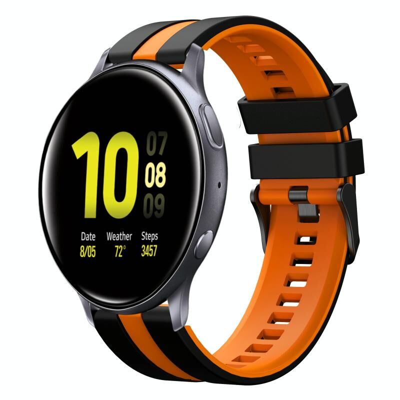 Για το Samsung Galaxy Watch Active 2 40mm 20mm Δύο Χρώματα Αθλητικό λουράκι ρολογιού σιλικόνης (μαύρο+πορτοκαλί)
