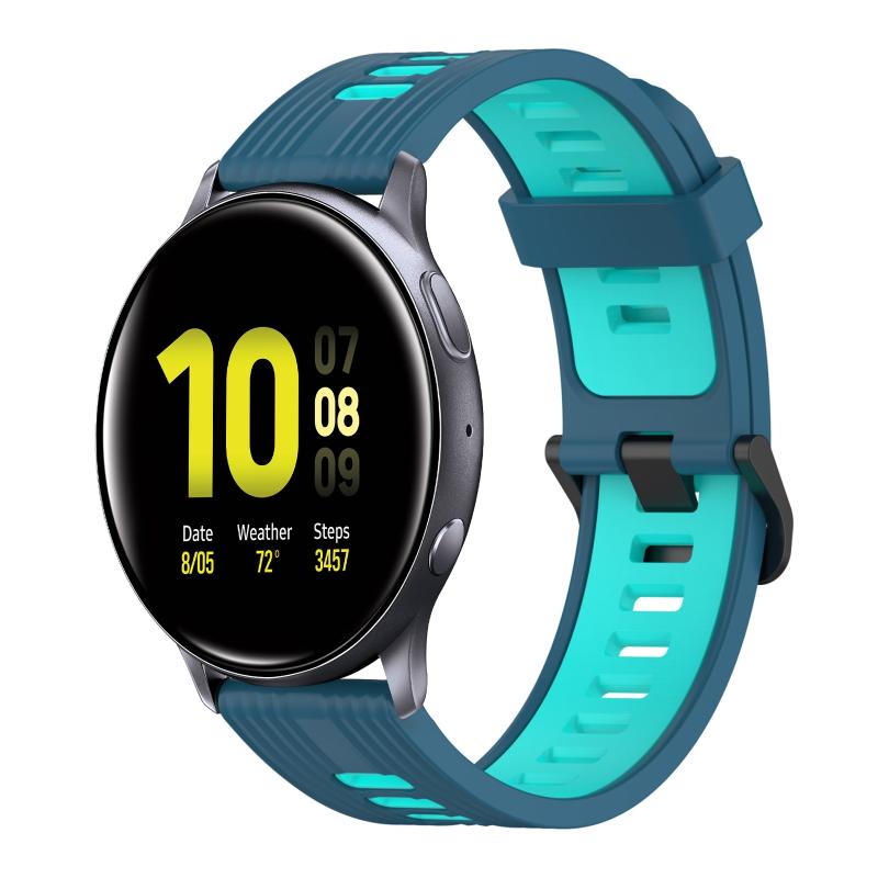 For Samsung Galaxy Watch Active 2 40mm 20mm Vertical Pattern Two-Color Silicone Watch Band(Blue+Water Duck)
