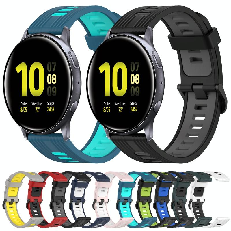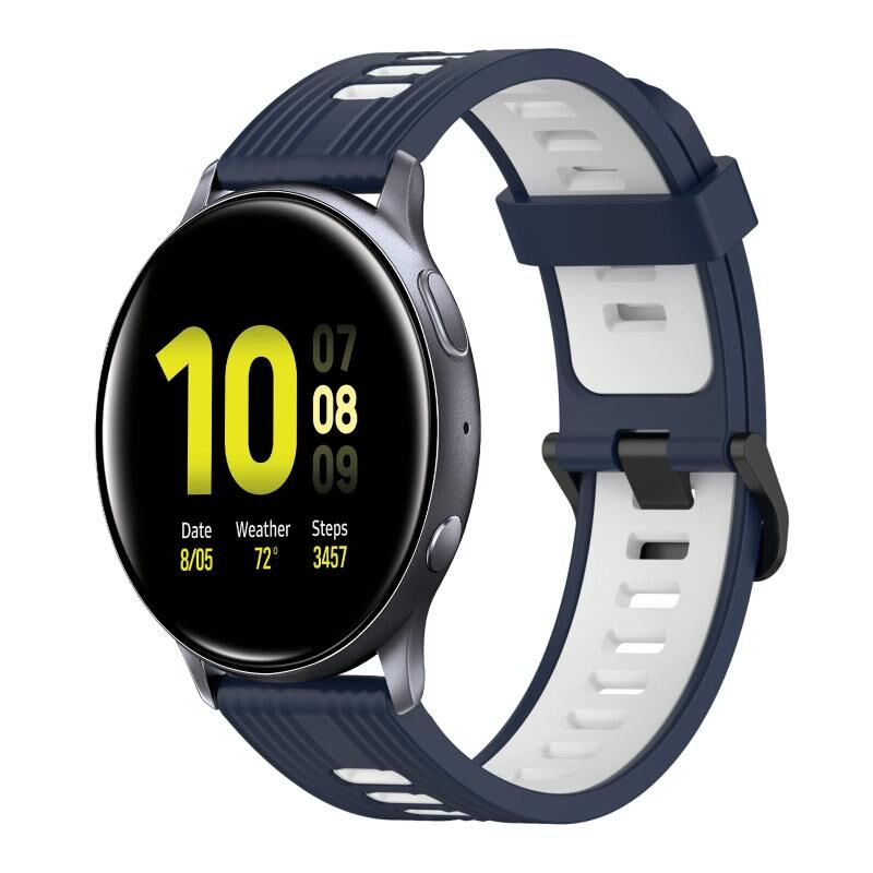 For Samsung Galaxy Watch Active 2 40mm 20mm Vertical Pattern Two-Color Silicone Watch Band(Dark Blue+White)