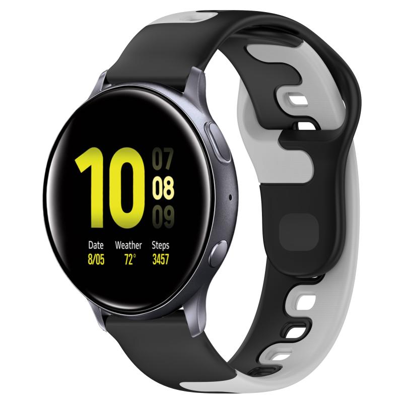 For Samsung Galaxy Watch Active 2 44mm 20mm Double Color Silicone Watch Band(Black+Grey)
