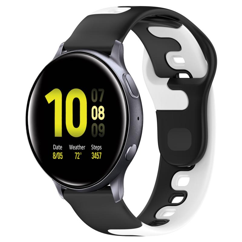For Samsung Galaxy Watch Active 2 44mm 20mm Double Color Silicone Watch Band(Black+White)