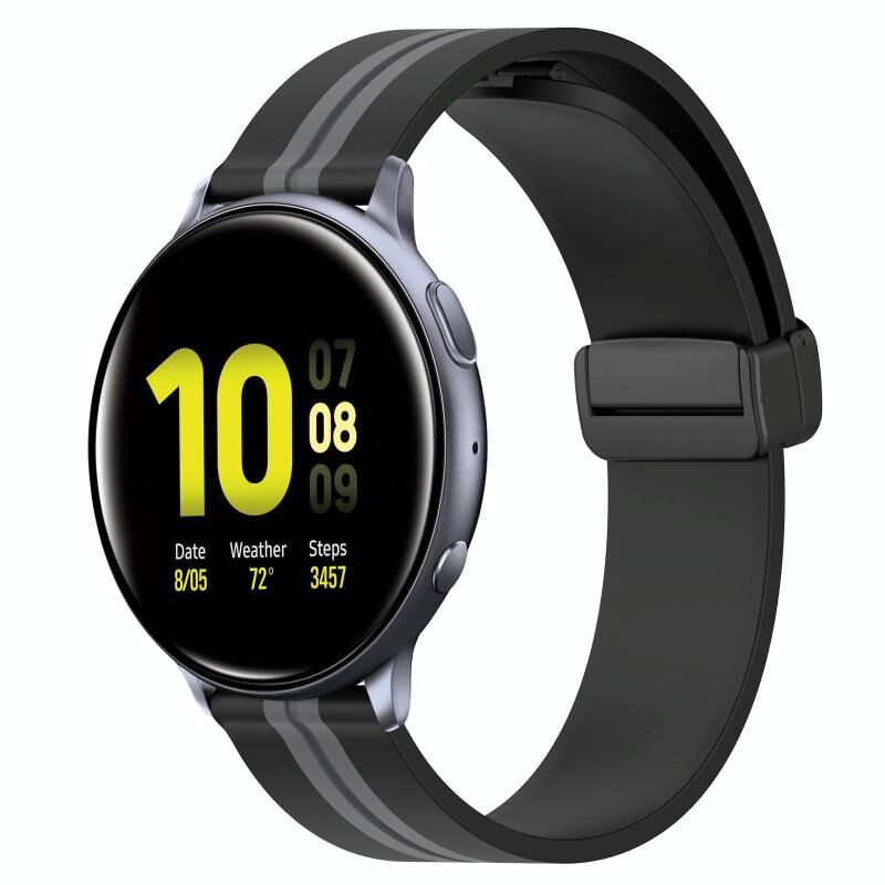 Για το Samsung Galaxy Watch Active 2 44mm 20mm Πτυσσόμενο μαγνητικό κούμπωμα ζώνη ρολογιού σιλικόνης (μαύρο+γκρι)