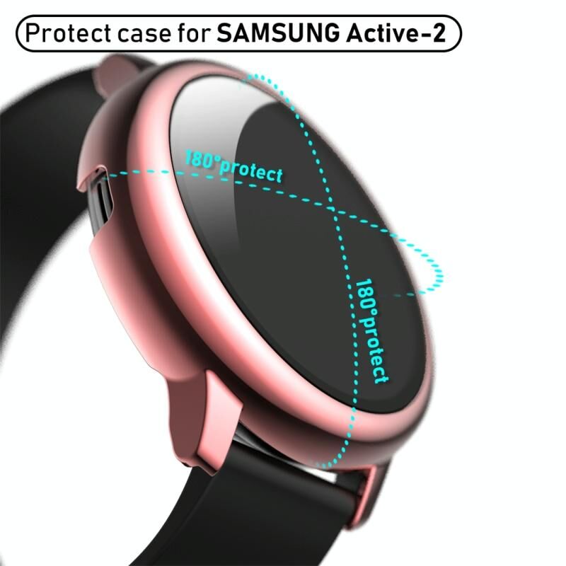 Θήκη προστασίας για Samsung Galaxy Watch Active 2 44mm, επιμεταλλωμένη από πολυανθρακικό (PC) με προστατευτική μεμβράνη από σκληρυμένο γυαλί (Ροζ)