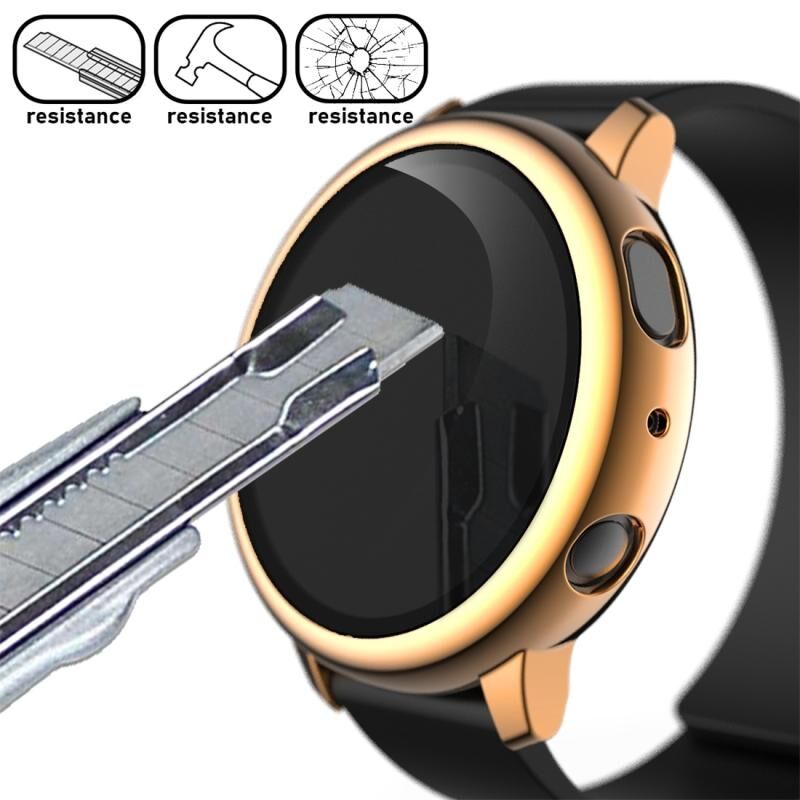 Θήκη προστασίας για Samsung Galaxy Watch Active 2 44mm, επιμεταλλωμένη από πολυανθρακικό (PC) με προστατευτική μεμβράνη από σκληρυμένο γυαλί (Χρυσαφί Ρόδινο).