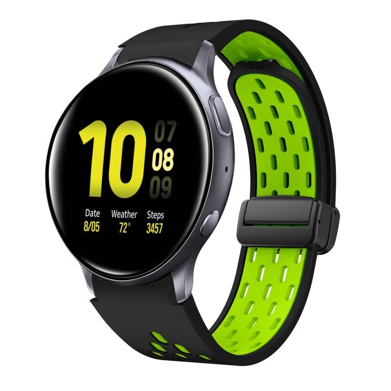 For Samsung Galaxy Watch Active 2 Two Color Magnetic Folding Black Buckle Silicone Watch Band(Black Silver Green)