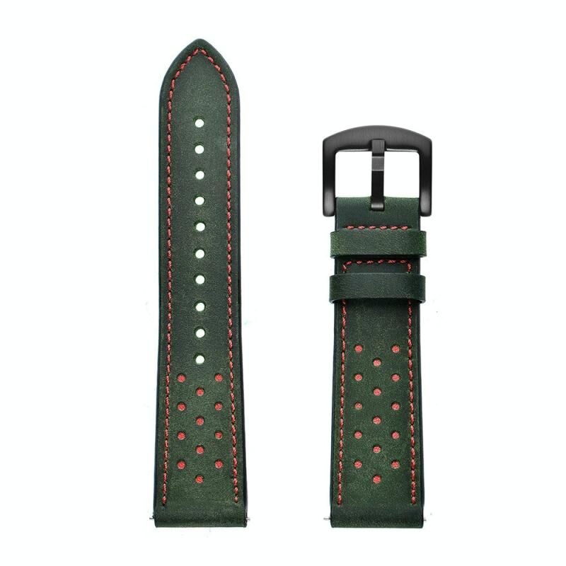 For Samsung Galaxy Watch Active 20mm Leather Eyelet Sport Watch Band(Army Green)