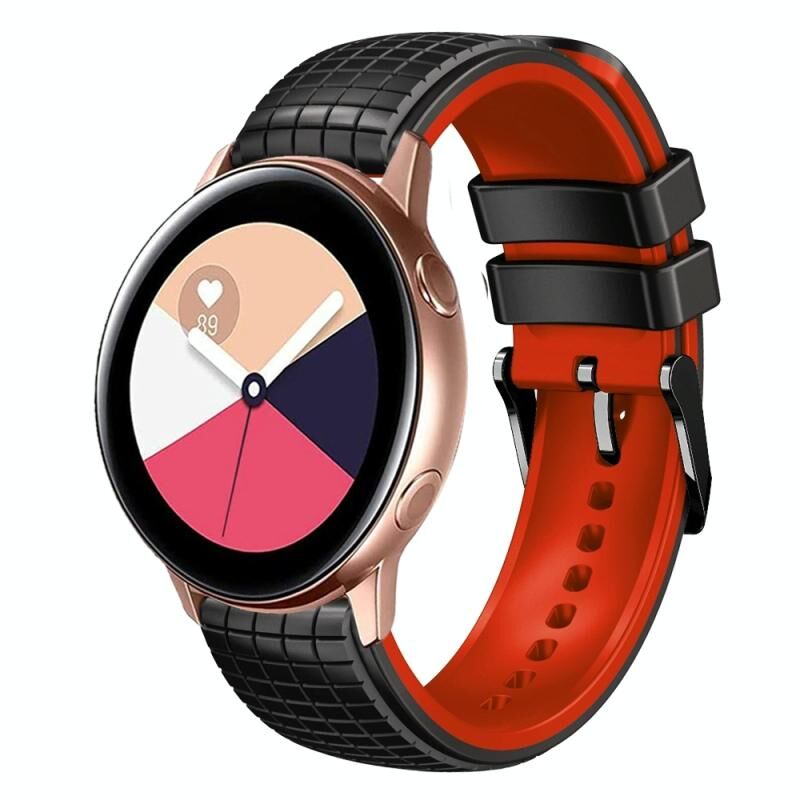 Για το Samsung Galaxy Watch Active 20mm Mesh Δύο Χρώμα σιλικόνης ρολόι μπάντα ρολογιού (μαύρο κόκκινο)