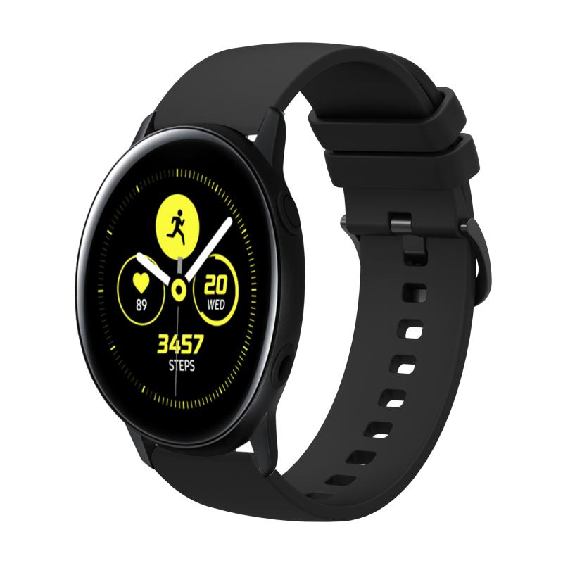 For Samsung Galaxy Watch Active 40mm 20mm Solid Color Soft Silicone Watch Band(Black)