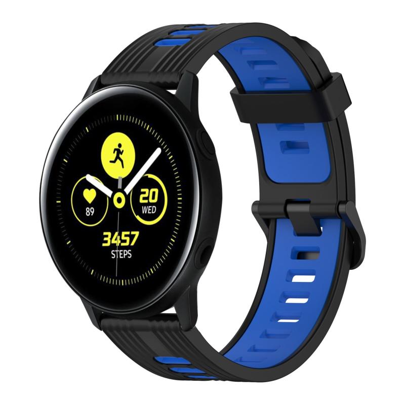 For Samsung Galaxy Watch Active 40mm 20mm Vertical Pattern Two-Color Silicone Watch Band(Black+Blue)