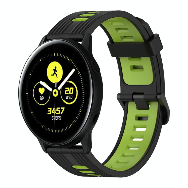 For Samsung Galaxy Watch Active 40mm 20mm Vertical Pattern Two-Color Silicone Watch Band(Black+Green)