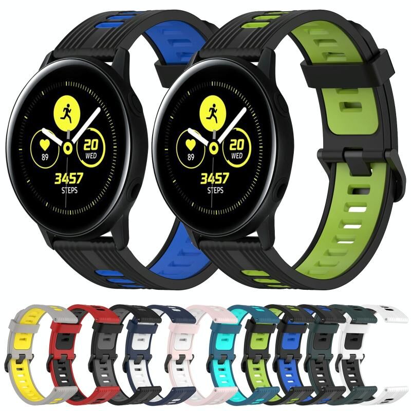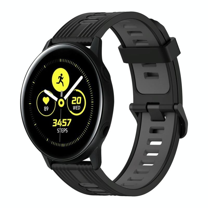 For Samsung Galaxy Watch Active 40mm 20mm Vertical Pattern Two-Color Silicone Watch Band(Black+Grey)