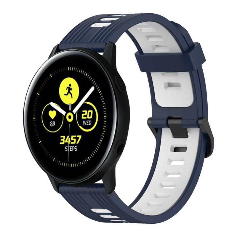 For Samsung Galaxy Watch Active 40mm 20mm Vertical Pattern Two-Color Silicone Watch Band(Dark Blue+White)