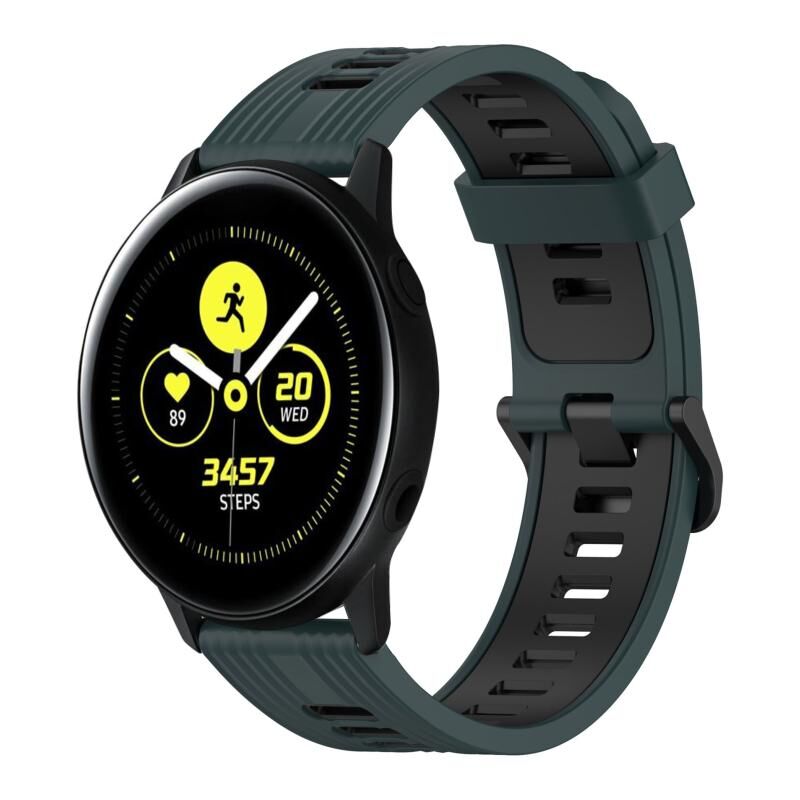 For Samsung Galaxy Watch Active 40mm 20mm Vertical Pattern Two-Color Silicone Watch Band(Olive Green + Black)
