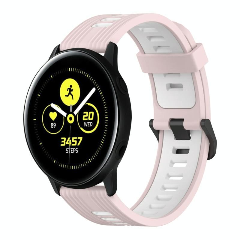 For Samsung Galaxy Watch Active 40mm 20mm Vertical Pattern Two-Color Silicone Watch Band(Pink+White)