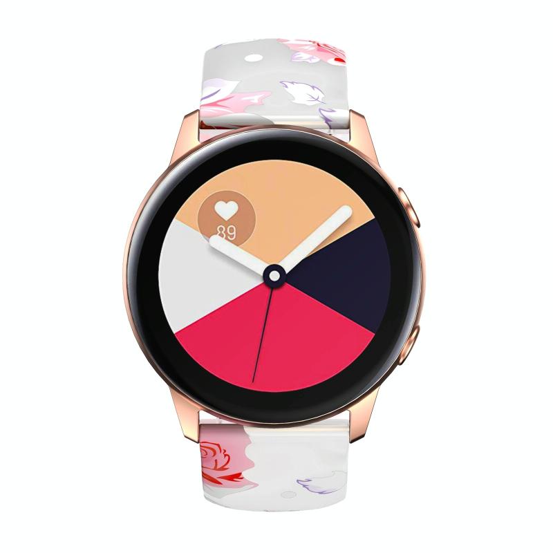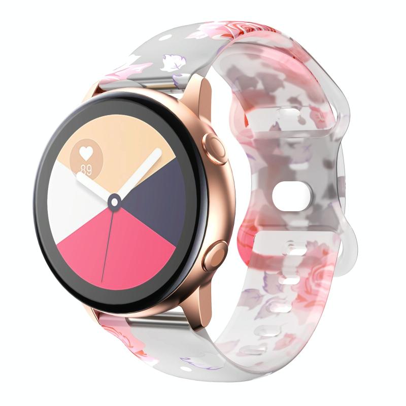 For Samsung Galaxy Watch Active Printing Butterfly Buckle Silicone Watch Band(Pink Flowers)