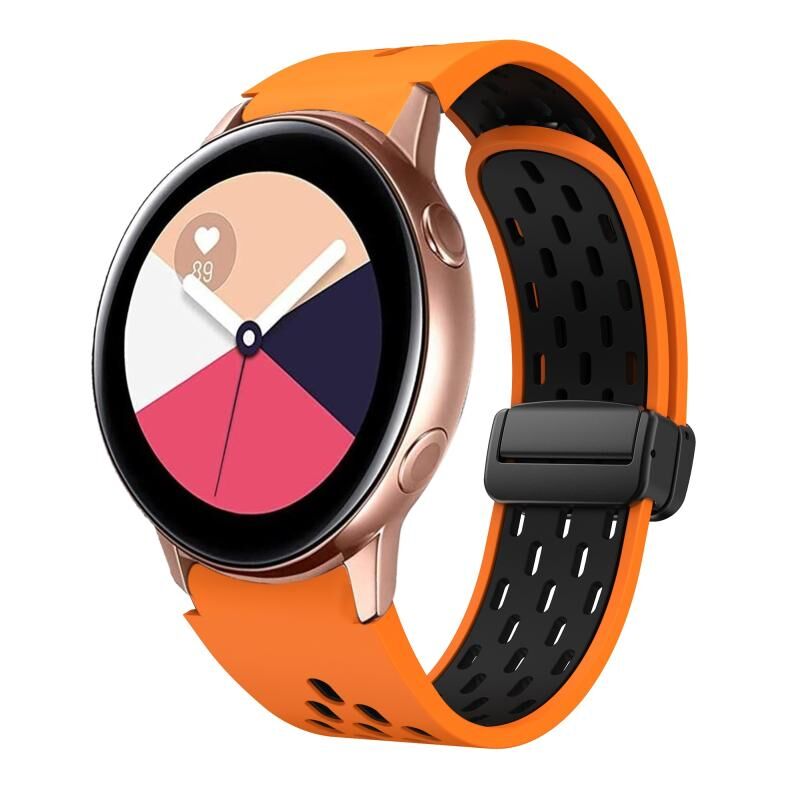 For Samsung Galaxy Watch Active Two Color Magnetic Folding Black Buckle Silicone Watch Band(Orange Black)