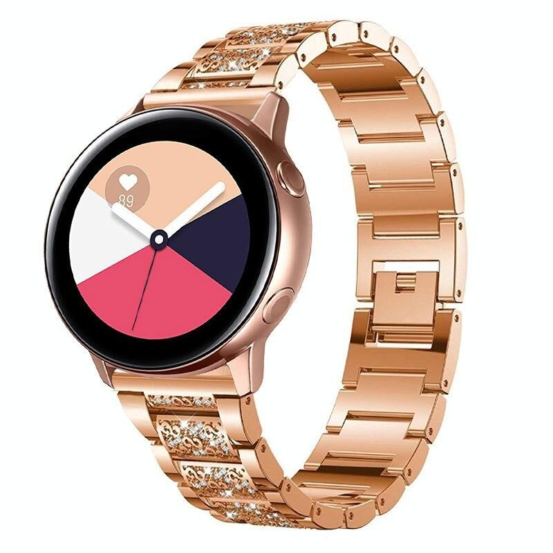 For Samsung Galaxy Watch Active2 20mm Three-beads Diamond Steel Watch Band(Rose Gold)