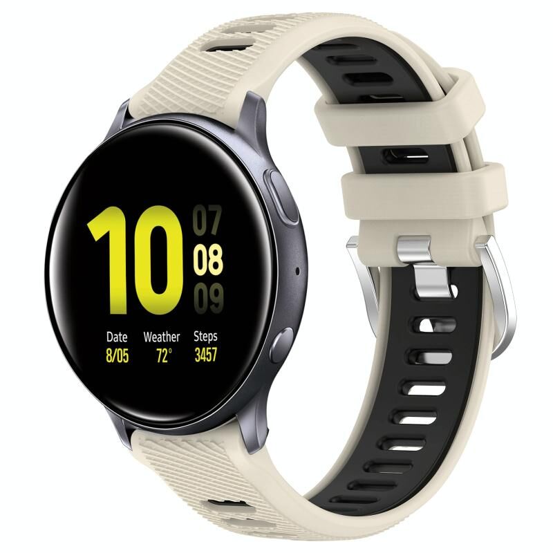 Για το Samsung Galaxy Watch Active2 40mm 20mm Αθλητισμός δύο χρωμάτων χάλυβα πόρπη σιλικόνης ρολόι μπάντα ρολογιών (Starlight + μαύρο)