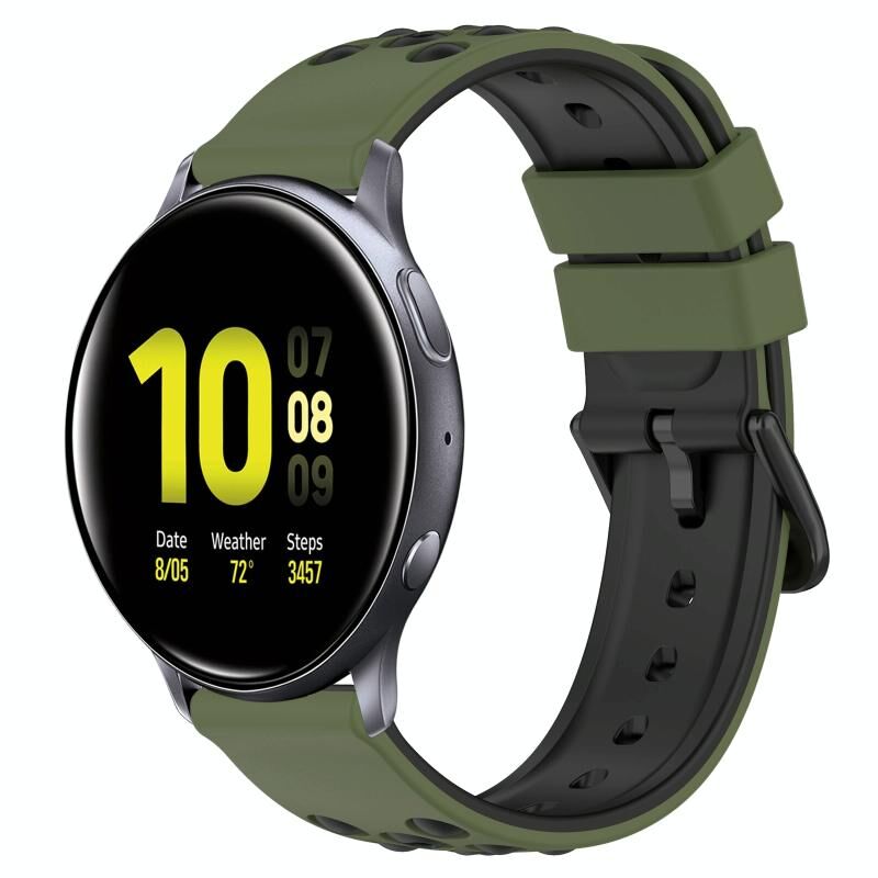 Για το Samsung Galaxy Watch Active2 40mm 20mm Δύο χρωμάτων πορώδες λουράκι σιλικόνης (πράσινο στρατού + μαύρο)