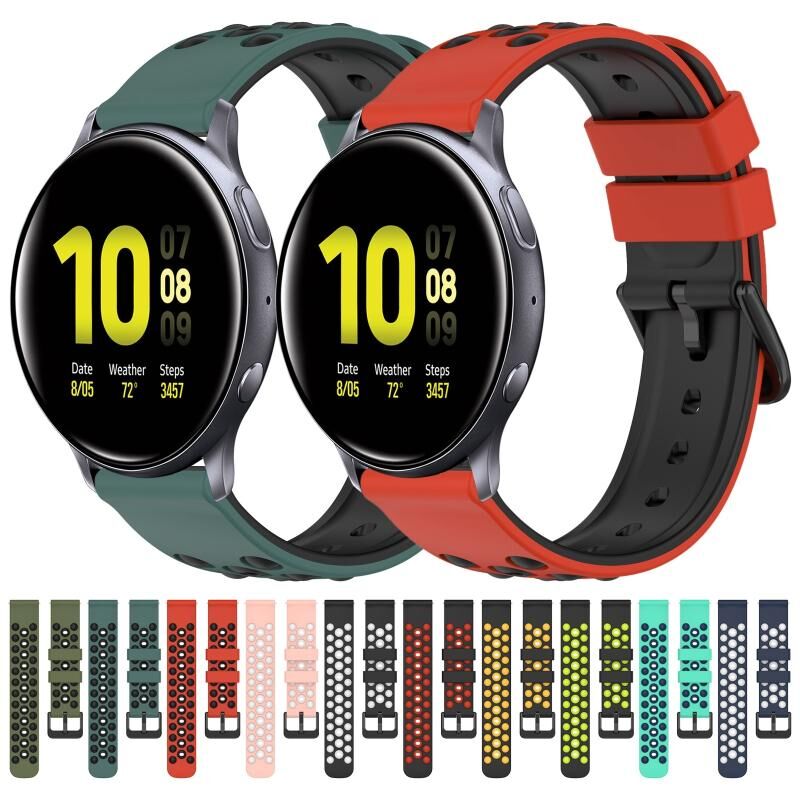 Για το Samsung Galaxy Watch Active2 40mm 20mm Δύο χρωμάτων πορώδες λουράκι σιλικόνης για ρολόι (Μπλε μεσάνυχτα + Λευκό)