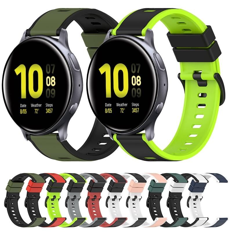 Για το Samsung Galaxy Watch Active2 40mm 20mm Δύο χρωμάτων σιλικόνης ρολόι μπάντα ρολογιού (μαύρο + πράσινο χρώμα)