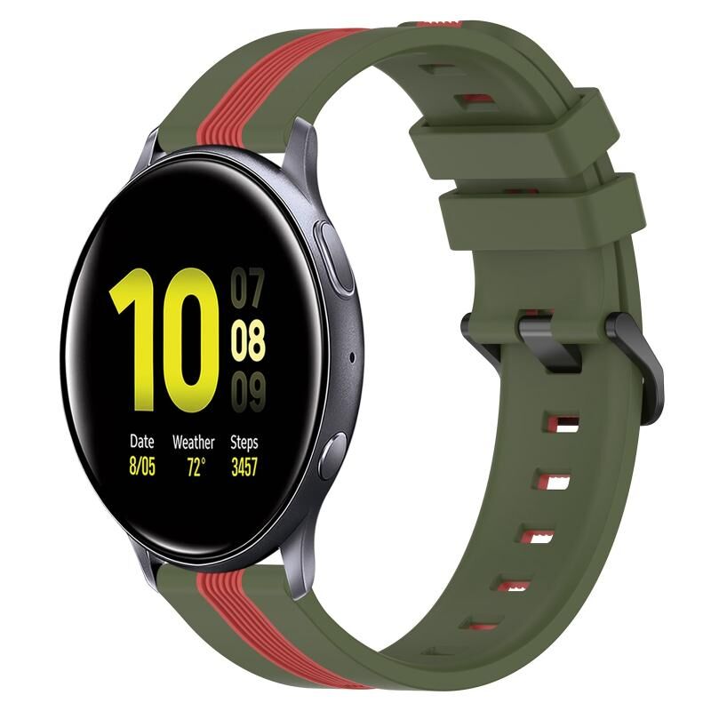 Για το Samsung Galaxy Watch Active2 40mm 20mm Κάθετη ζώνη ρολογιού σιλικόνης δύο χρωμάτων (πράσινο στρατού+κόκκινο)