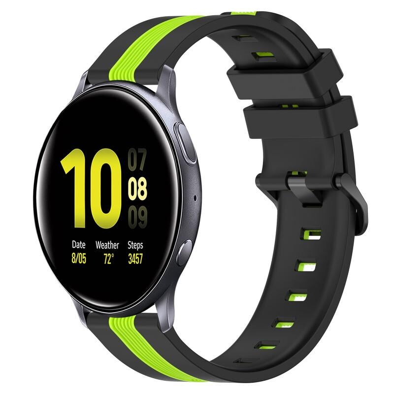 Για το Samsung Galaxy Watch Active2 40mm 20mm Κάθετη ζώνη ρολογιού σιλικόνης δύο χρωμάτων (Μαύρο+Lime Green)