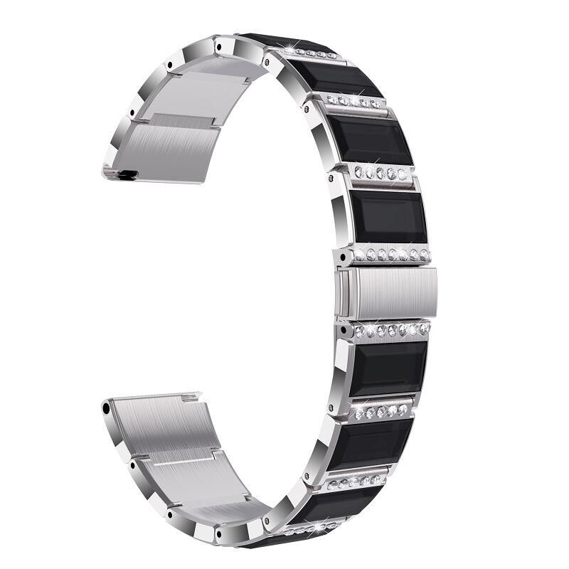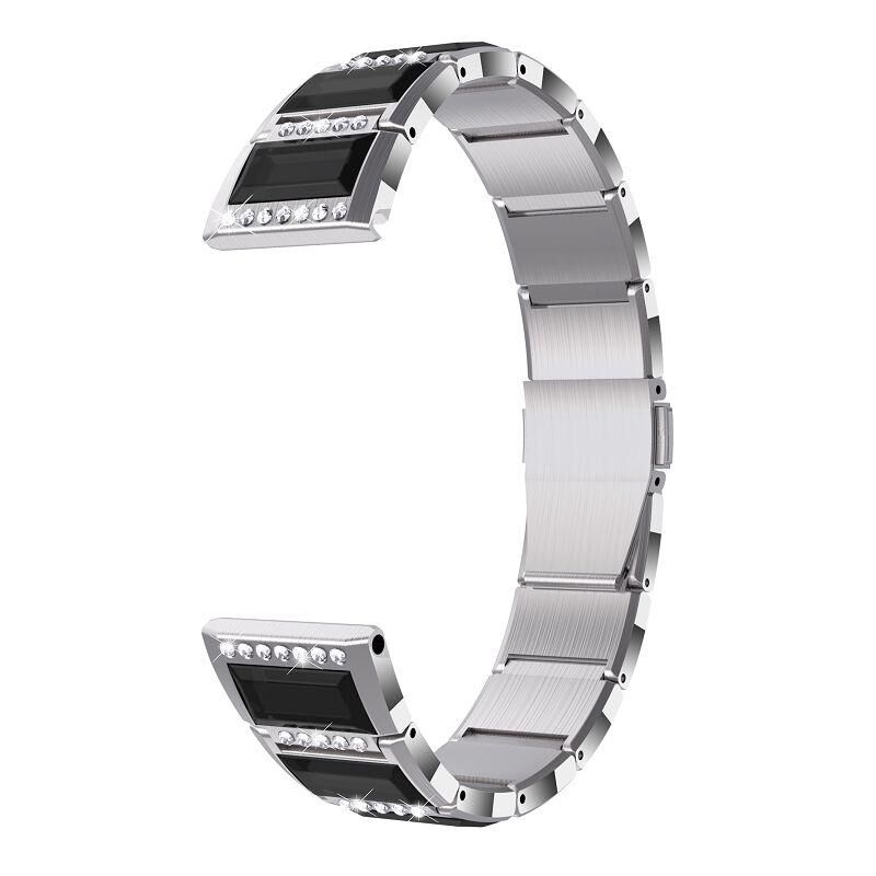 For Samsung Galaxy Watch Active2 44mm / Watch Active2 40mm / Watch Active Stainless Steel Diamond Encrusted Watch Band(Silver+Black)
