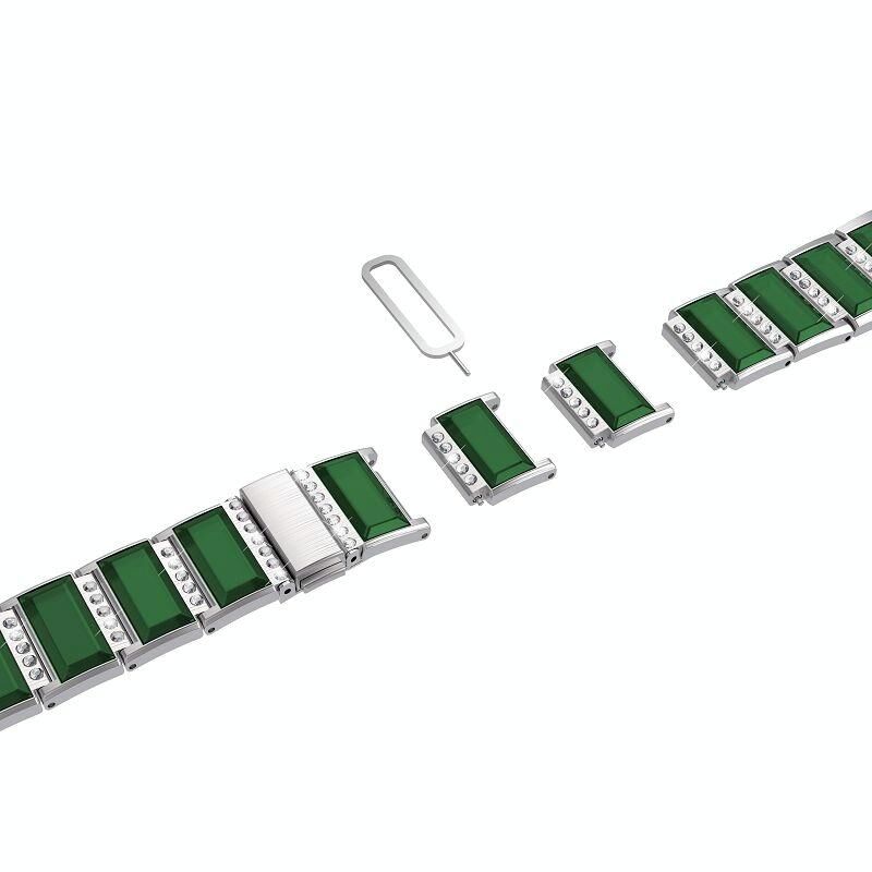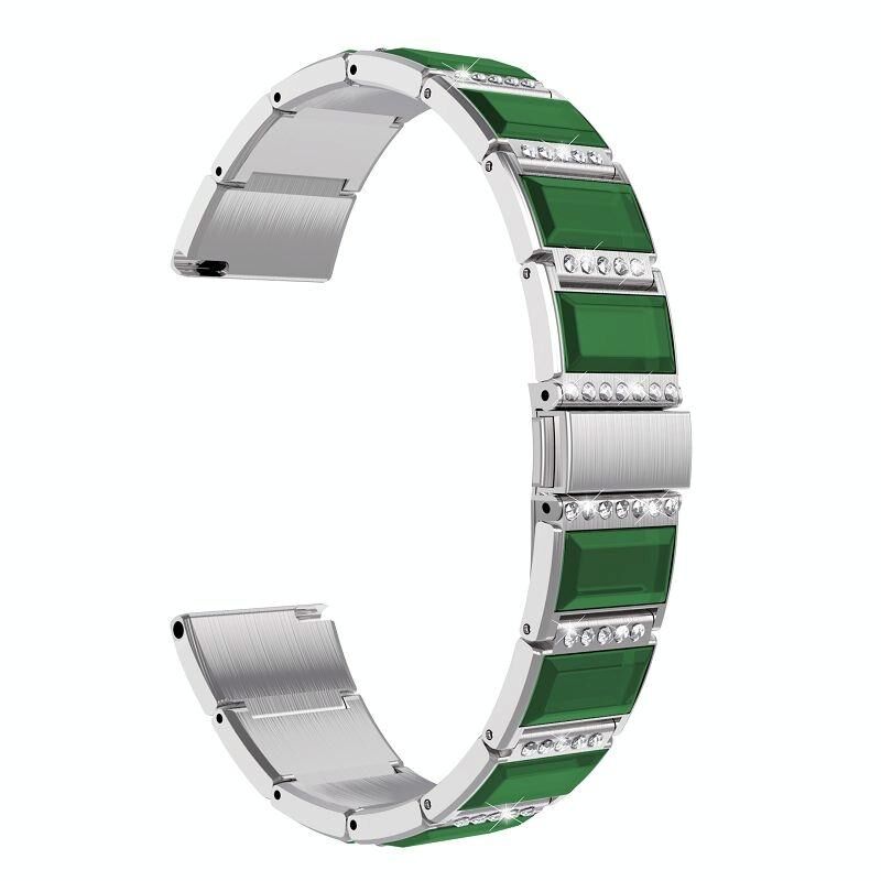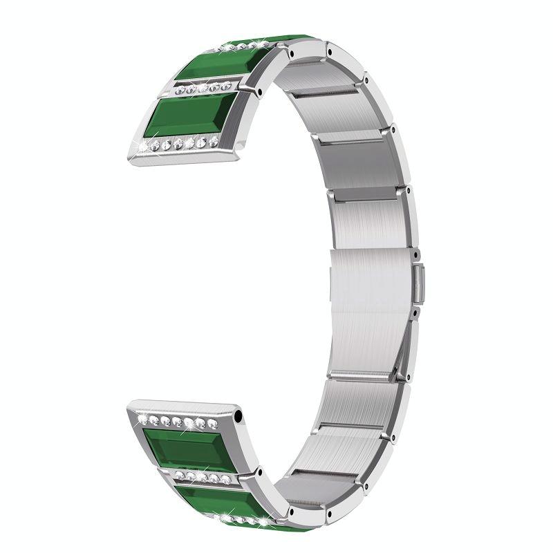 For Samsung Galaxy Watch Active2 44mm / Watch Active2 40mm / Watch Active Stainless Steel Diamond Encrusted Watch Band(Silver+Green)
