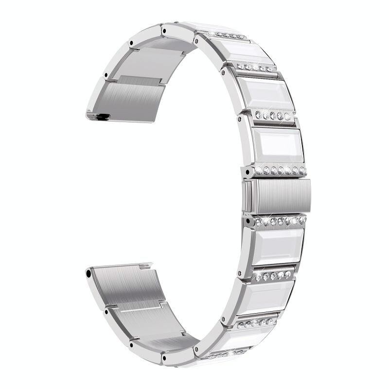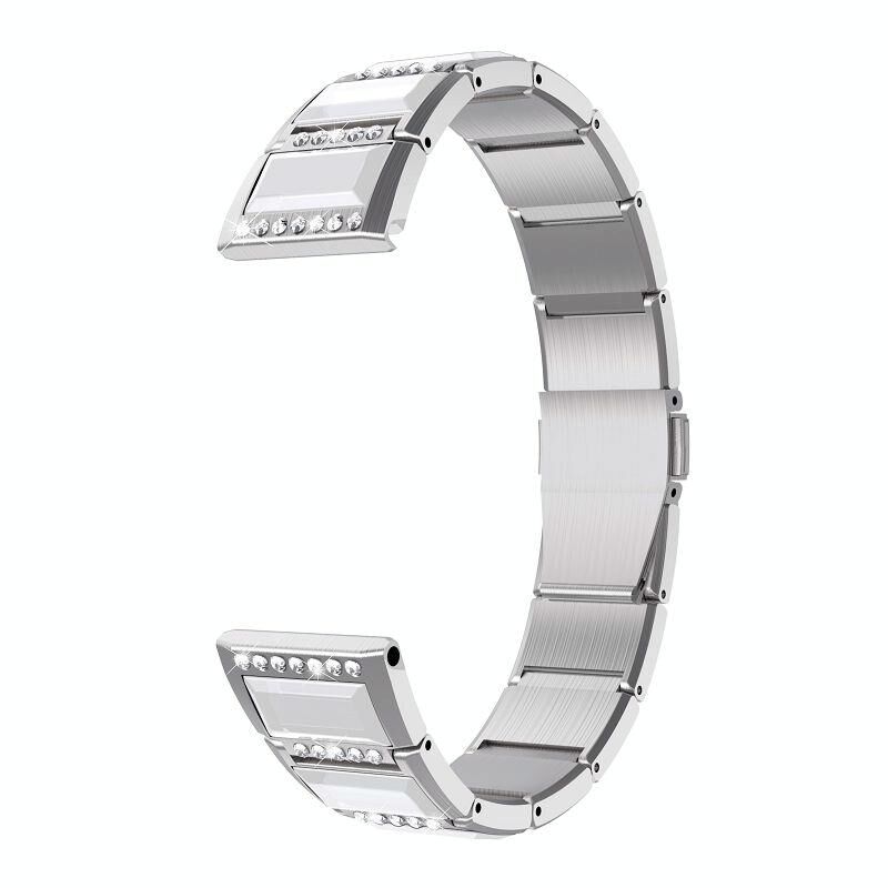 For Samsung Galaxy Watch Active2 44mm / Watch Active2 40mm / Watch Active Stainless Steel Diamond Encrusted Watch Band(Silver+White)
