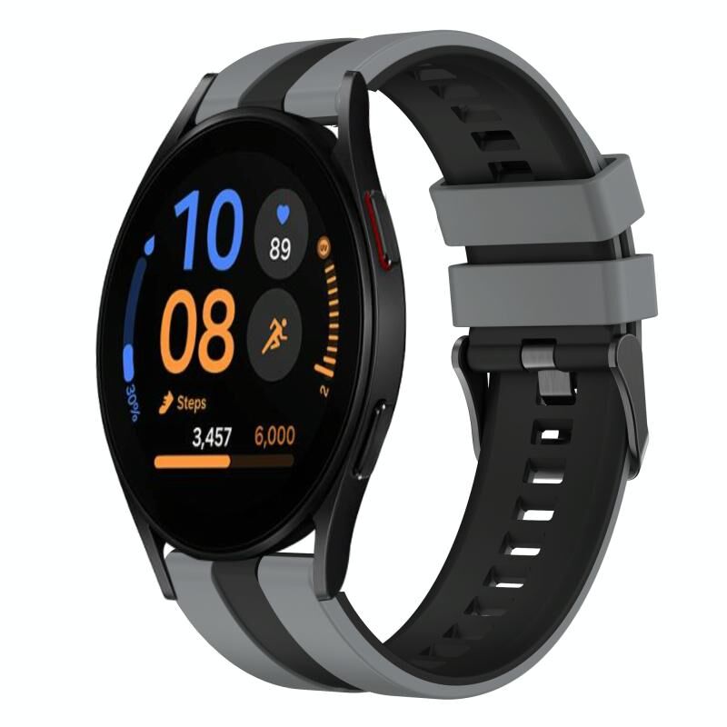 Για το Samsung Galaxy Watch FE 40mm 20mm Δύο Χρώματα Αθλητικό λουράκι ρολογιού σιλικόνης (Γκρι+Μαύρο)