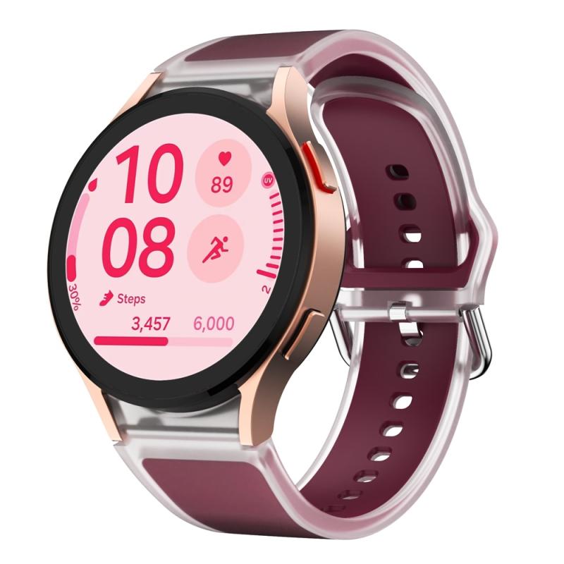For Samsung Galaxy Watch FE 40mm Glacier Clear Two Color Silicone Watch Band(Wine Red)