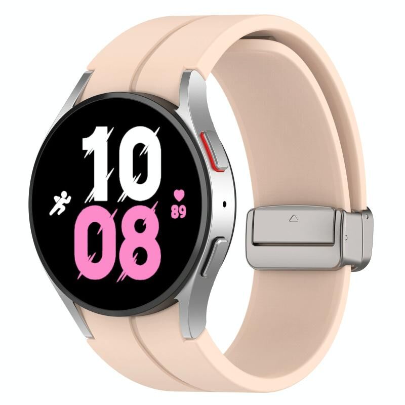 Για Samsung Galaxy Watch FE 40mm Μαγνητική πτυσσόμενη ασημένια πόρπη σιλικόνης (ροζ)