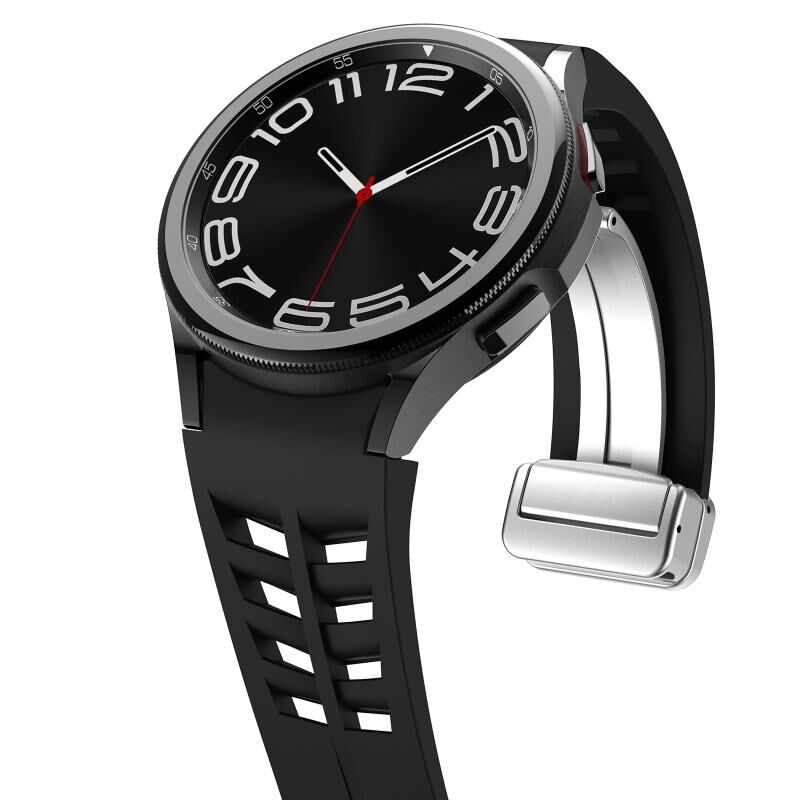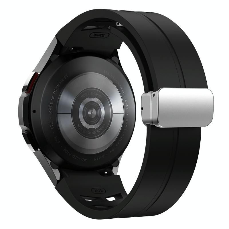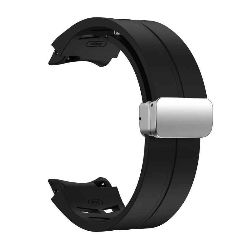 Για Samsung Galaxy Watch FE 40mm Richard μαγνητική πτυσσόμενη ασημένια πόρπη σιλικόνης (μαύρο)