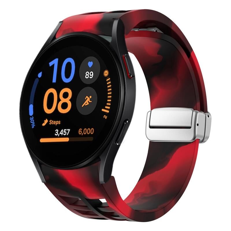 Για Samsung Galaxy Watch FE 40mm Richard μαγνητική πτυσσόμενη ασημένια πόρπη σιλικόνης (μαύρο κόκκινο καμουφλάζ)