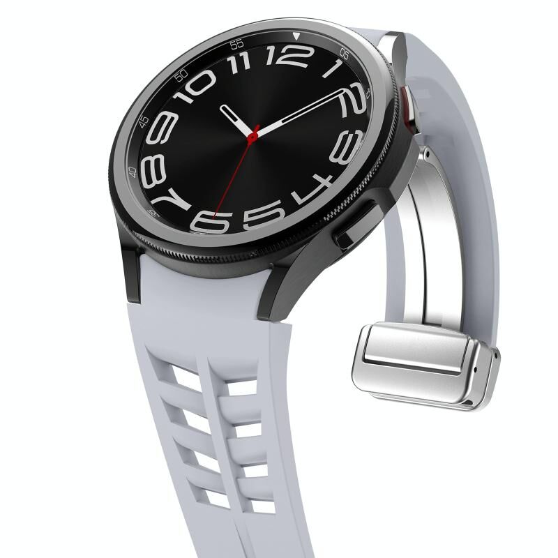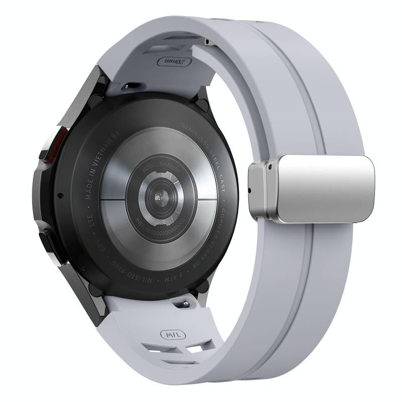 Για το Samsung Galaxy Watch FE 40mm Richard μαγνητική πτυσσόμενη ασημένια πόρπη σιλικόνης ζώνη ρολογιού (ανοιχτό γκρι)