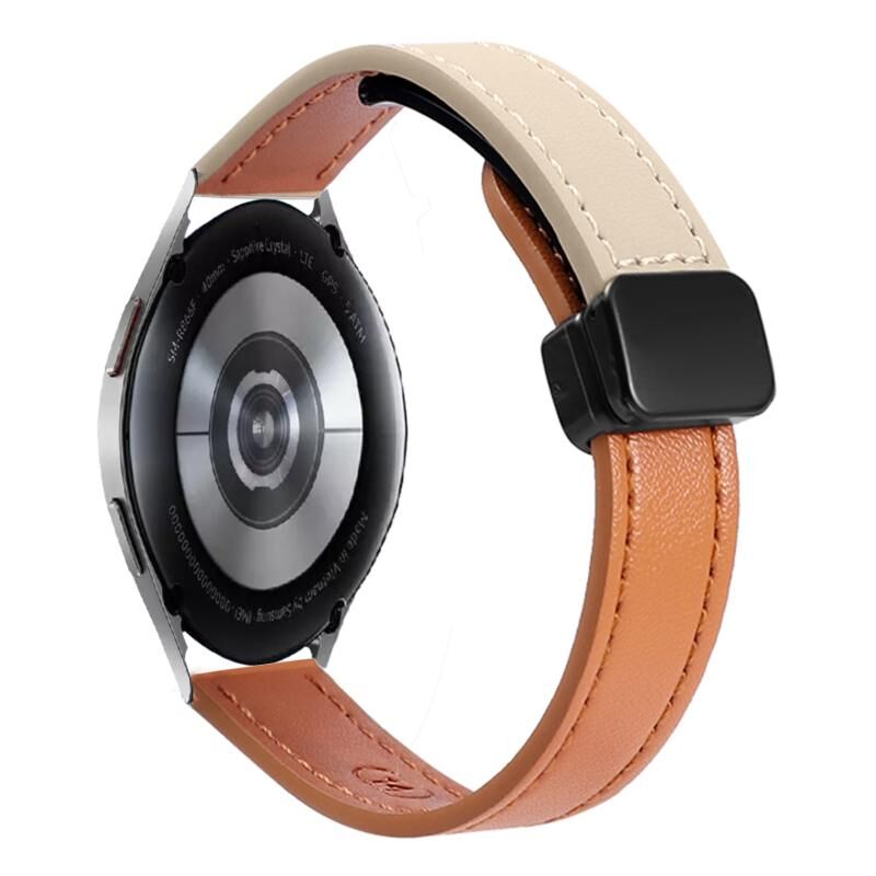 For Samsung Galaxy Watch FE 40mm Slim Magnetic Buckle 20mm Microfiber Leather Watch Band(Aimaorange+Cream Apricot)