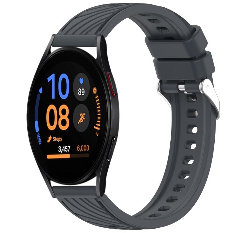 Για το Samsung Galaxy Watch FE 40mm ραβδώσεις υφή σιλικόνης 20 χιλιοστά ρολόι μπάντα (σκούρο γκρι)