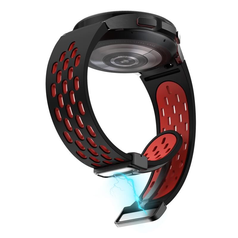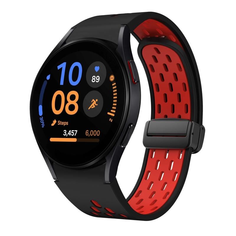 For Samsung Galaxy Watch FE 40mm Two Color Magnetic Folding Black Buckle Silicone Watch Band(Black Red)