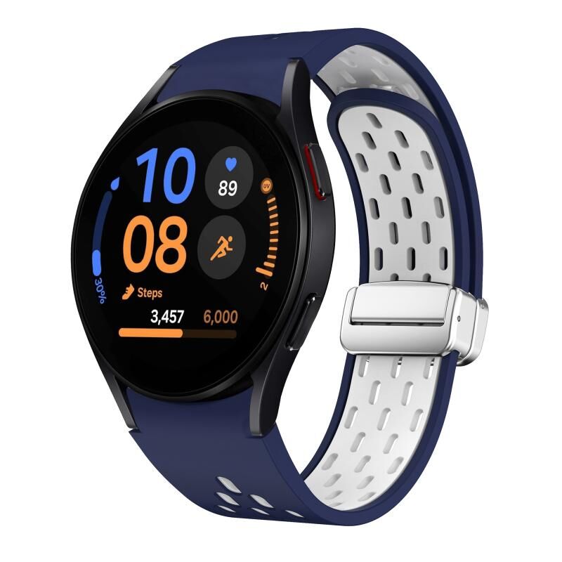 Για το Samsung Galaxy Watch FE 40mm Δύο χρώματα μαγνητική πτυσσόμενη ασημένια πόρπη σιλικόνης ζώνη ρολογιού (Midnight Blue White)