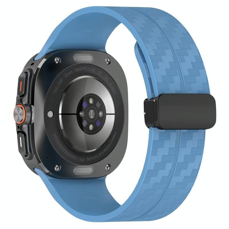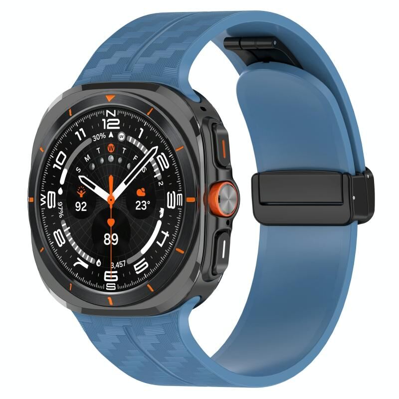 Για το Samsung Galaxy Watch Ultra 47mm Carbon Fiber μαγνητική πτυσσόμενη πόρπη σιλικόνης ζώνη ρολογιού (μπλε)