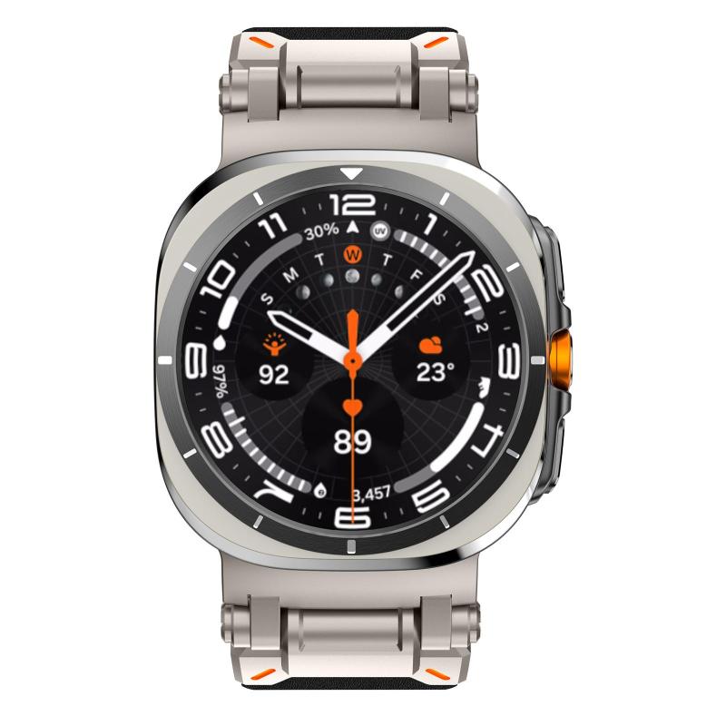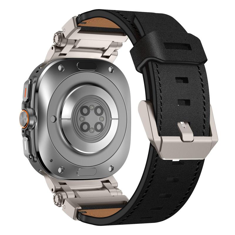 For Samsung Galaxy Watch Ultra 47mm Explorer Stainless Steel Head Leather Watch Band(Titanium Black)
