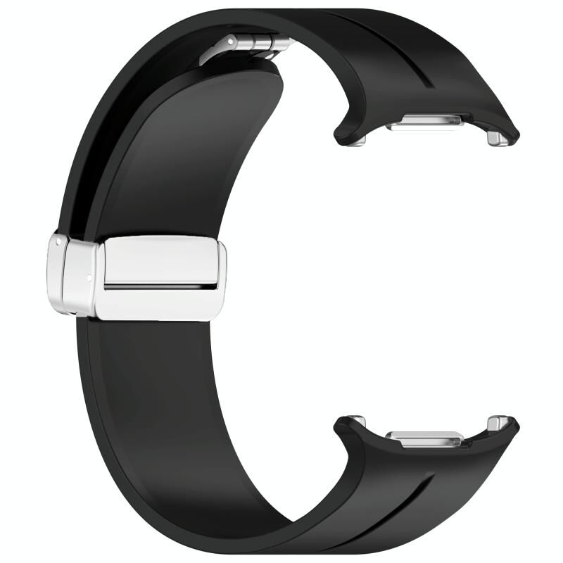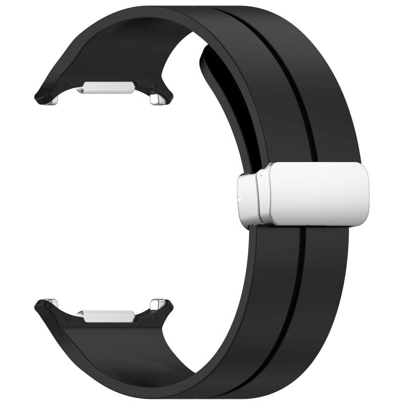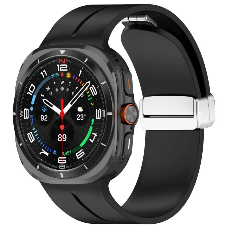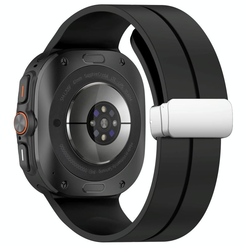 Για το Samsung Galaxy Watch Ultra 47mm Groove μαγνητική πτυσσόμενη ασημένια πόρπη σιλικόνης (μαύρο)