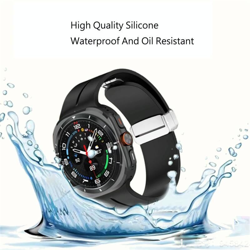 Για το Samsung Galaxy Watch Ultra 47mm Groove μαγνητική πτυσσόμενη ασημένια πόρπη σιλικόνης (σκούρο γκρι)