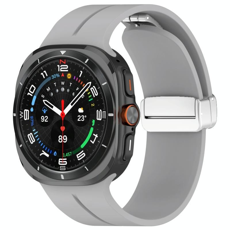 Για το Samsung Galaxy Watch Ultra 47mm Groove μαγνητική πτυσσόμενη ασημένια πόρπη σιλικόνης (ανοιχτό γκρι)