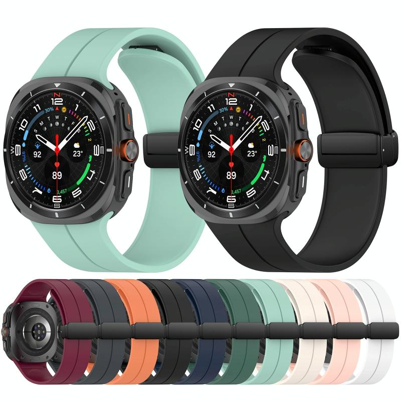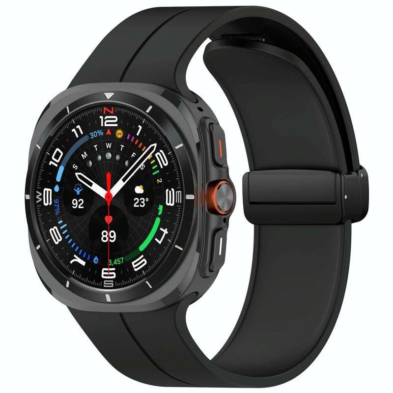 For Samsung Galaxy Watch Ultra 47mm Groove Style Folding Magnetic Buckle Silicone Watch Band(Black)