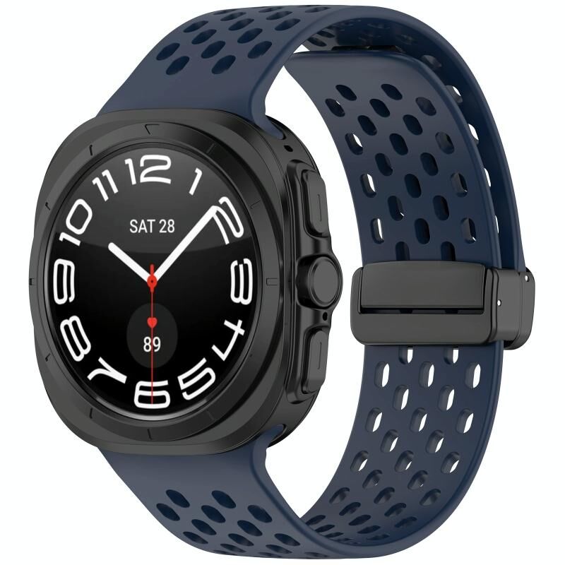 Για Samsung Galaxy Watch Ultra 47mm Λουράκι Σιλικόνης με Μαγνητική Αγκράφα Διπλού Διπλώματος σε Στυλ Τρύπας (Ανοιχτό Γκρι)