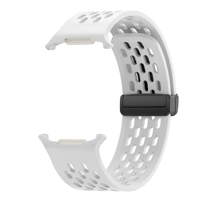 Για το Samsung Galaxy Watch Ultra 47mm Hole Style Plastic Connector Μαγνητική πτυσσόμενη πόρπη σιλικόνης (λευκό)